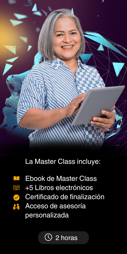 Con nuestra excepcional MasterClass, lleva tus habilidades al siguiente nivel mediante una sesión intensiva impartida por expertos. Obtendrás insights valiosos y desarrollarás habilidades prácticas que podrás aplicar de inmediato. Cumpliendo con los más altos estándares académicos, podrás interactuar directamente con los instructores y recibir un certificado al finalizar. Además, te llevarás un Ebook exclusivo y te unirás a una comunidad selecta de estudiantes. ¡Inscríbete ahora y empodérate con el conocimiento!